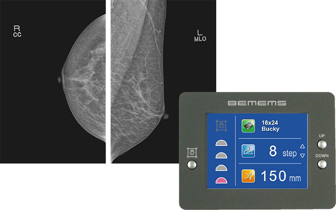 Incluye el sistema automático de posicionamiento estándar (ASP). Esta función patentada por BEMEMS, se adapta para maximizar la labor del operador Y puede ser automáticamente posicionada con tan solo oprimir un botón. Las posiciones estándar son: RCC-LCC-RMLO-LMLO.